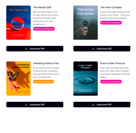 The library isn’t just a collection — it’s a growing, evolving learning hub that supports your emotional development over time. New titles are added regularly, giving you fresh insights and new perspectives to explore as your self-awareness deepens. Each ebook connects directly to your goals, offering practical steps you can implement immediately:
