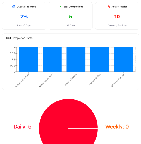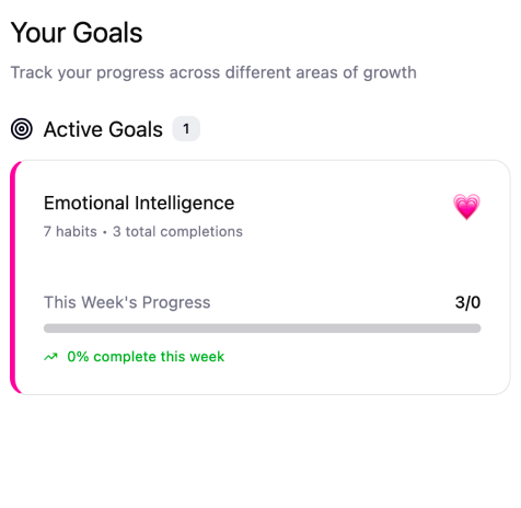 This makes the dashboard much more than a habit tracker. It becomes a curated emotional-intelligence program that adapts to who you are and how you live. Each practice strengthens a different layer of your emotional skillset, helping you carry emotional clarity into work meetings, difficult conversations, creative decisions, and personal interactions.