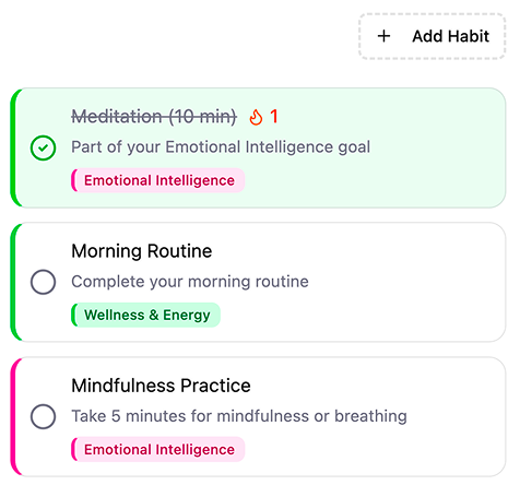 The system selects habits that build the exact skills you need for real-life challenges — navigating conflict, staying composed under pressure, reconnecting with loved ones, or managing emotional fatigue after long days.