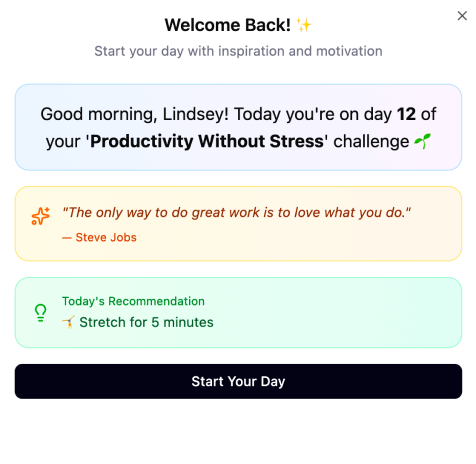 - A personalized greeting that reminds you you’re on a meaningful growth journey.