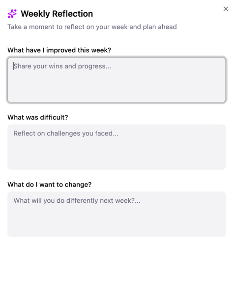 Reflection is a core EQ skill — it allows you to pause, process, and interpret your experiences rather than simply reacting to them. The weekly reflection tool guides you through structured questions that help you evaluate: